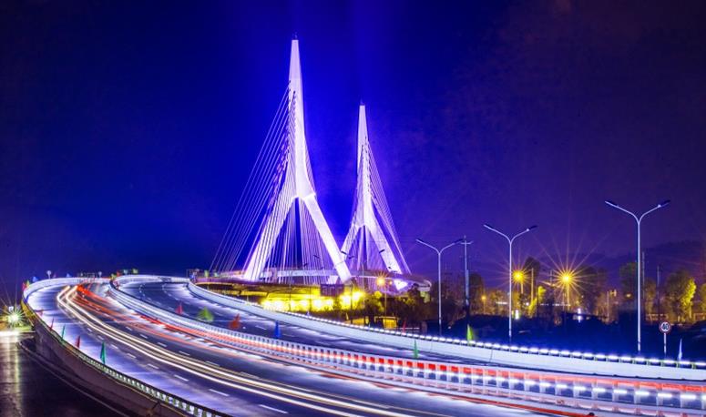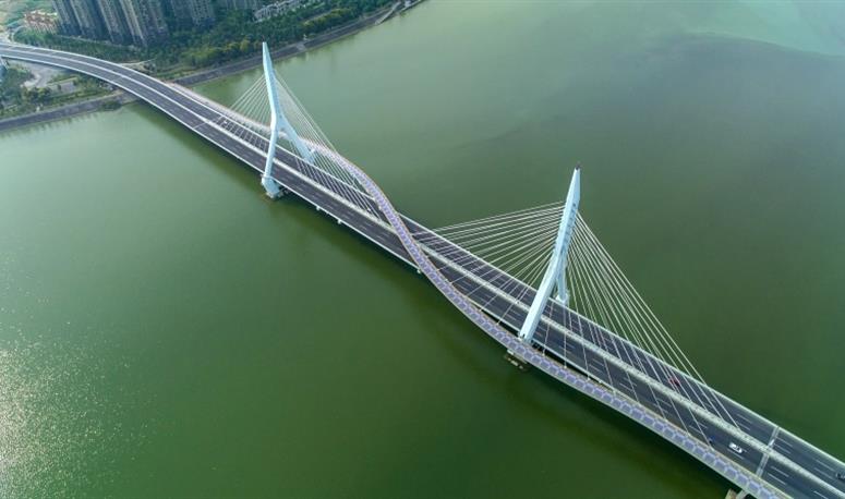 城南新區(qū)一號(hào)橋建成通車(chē),有效地優(yōu)化和改善了綿陽(yáng)南區(qū)的交通結(jié)構(gòu),極大地緩解了中心城區(qū)的交通壓力,從城東游仙區(qū)到城南新區(qū)不再繞行主城區(qū),城東到城南將縮短5公里左右的路程。大橋在人行層飛架橋面上方,形成并不規(guī)則的“S”形,為全漂浮體系,建設(shè)技術(shù)居世界領(lǐng)先地位。