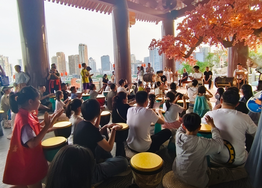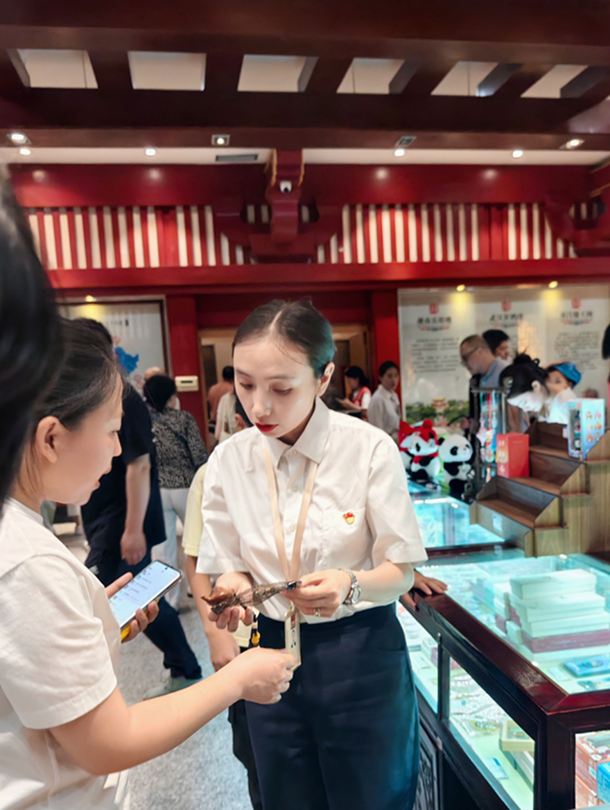 “五一”期間,景區(qū)在龜山打造“非遺工坊”,推出“漆扇制作—草編體驗(yàn)—詩詞題寫—場景打卡”一體化體驗(yàn)鏈,可參與、可帶走、可傳播,突破“靜態(tài)展示”傳統(tǒng)模式,通過“活態(tài)傳承+互動賦能”推動非遺文化創(chuàng)造性轉(zhuǎn)化,每天吸引逾千人次游客參與。