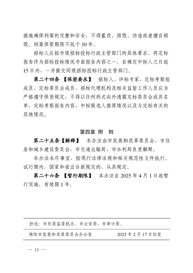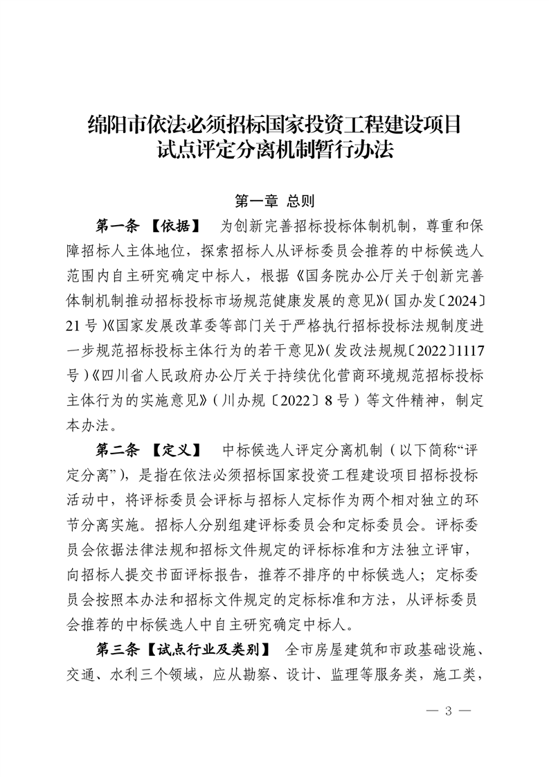 綿陽市依法必須招標國家投資工程建設項目試點評定分離機制暫行辦法(2025.2.28發(fā)布)